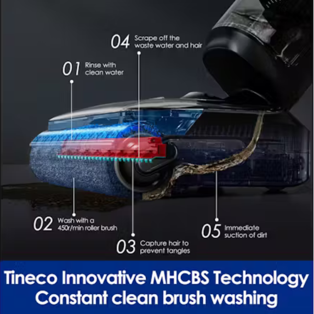 Keep your vacuum fresh after every use with the 85°C Hot Air FlashDry Self-Cleaning System. It quickly dries and refreshes the roller brush, minimising odours and maintaining cleanliness. The full-path cleaning and MHCBS technology ensure your brush stays fluffy and spotless.