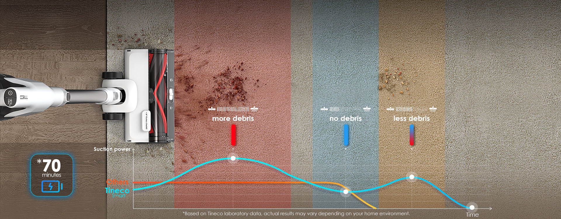 - Tineco iLoop Smart Sensor: Intelligently detects the amount of dust and automatically adjusts the suction power accordingly, providing a more efficient cleaning experience.