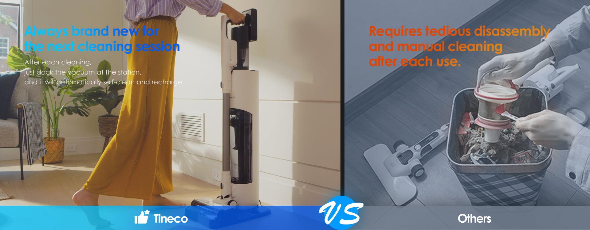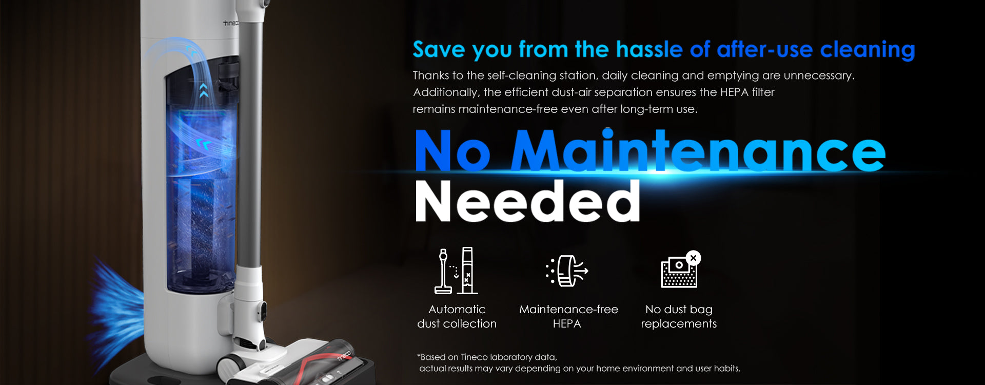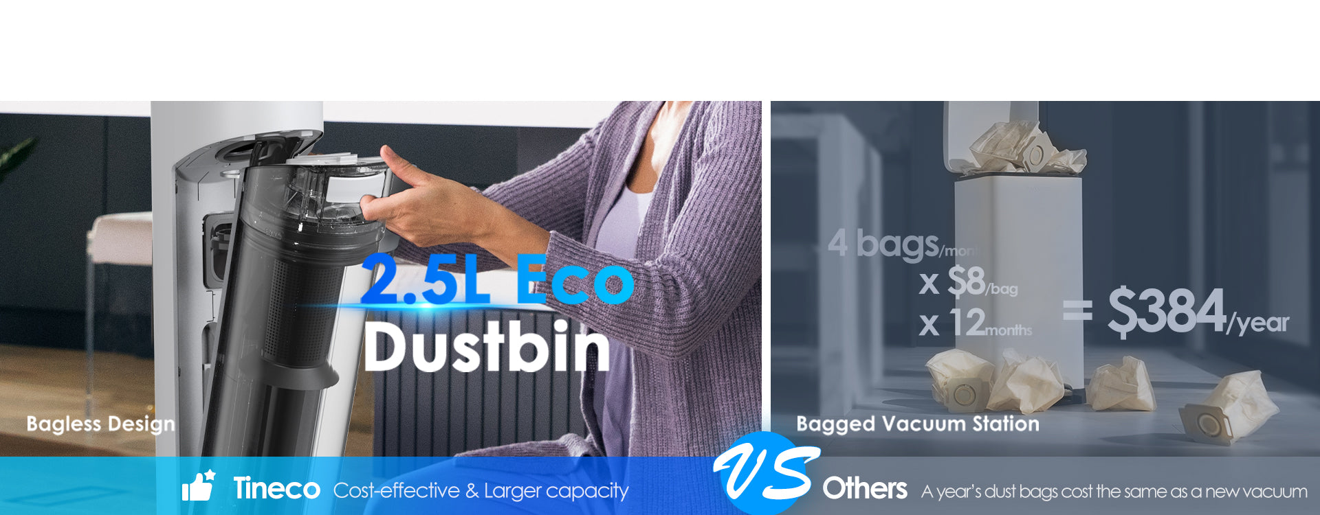 - No maintenance needed after use: After every cleaning, simply return the vacuum to station where it will automatically self-clean and recharge. The 2.5L eco dustbin holds debris and dust for a long time, eliminating the need for daily emptying. Save you from the hassle of after-use cleaning.