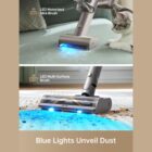 - [Blue LED Lights for Comprehensive Cleaning]: Blue LEDs on the multi-surface brush with a wide 138° angle effectively detect and expose even tiny dust particles in hard-to-reach corners or dimly lit areas.