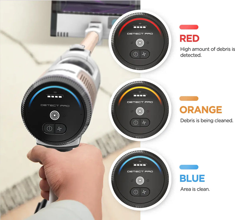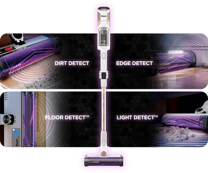 The Shark Detect Pro Cordless Stick has 4 ultra-intelligent deep cleaning technologies that detect & react to messes in your home. It automatically boosts power on hidden dirt, increases suction on edges and corners, optimises cleaning based on surface type and illuminates hidden debris—all combining to provide up to 50% better dirt pickup*.