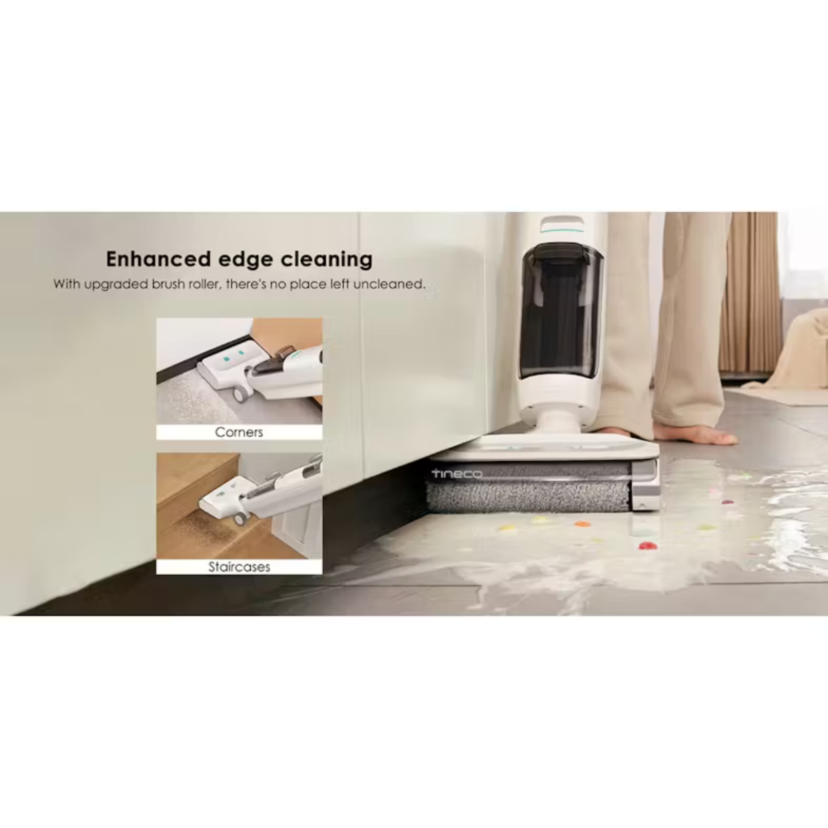 Designed for ultimate control, the compact, cordless handstick glides smoothly across floors and reaches hidden spaces with 150° flexible maneuverability. Its upgraded brush ensures edge-to-edge cleaning, covering corners and tight spots with ease.