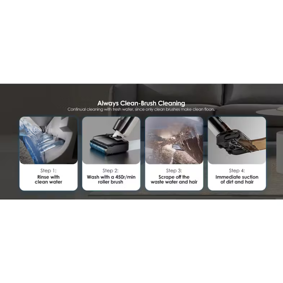 Experience deep, thorough cleaning with 20,000Pa of suction strength, efficiently capturing dirt, dust, and debris from any surface. The anti-tangle brush design prevents hair wrap, keeping suction strong and consistent throughout your clean.